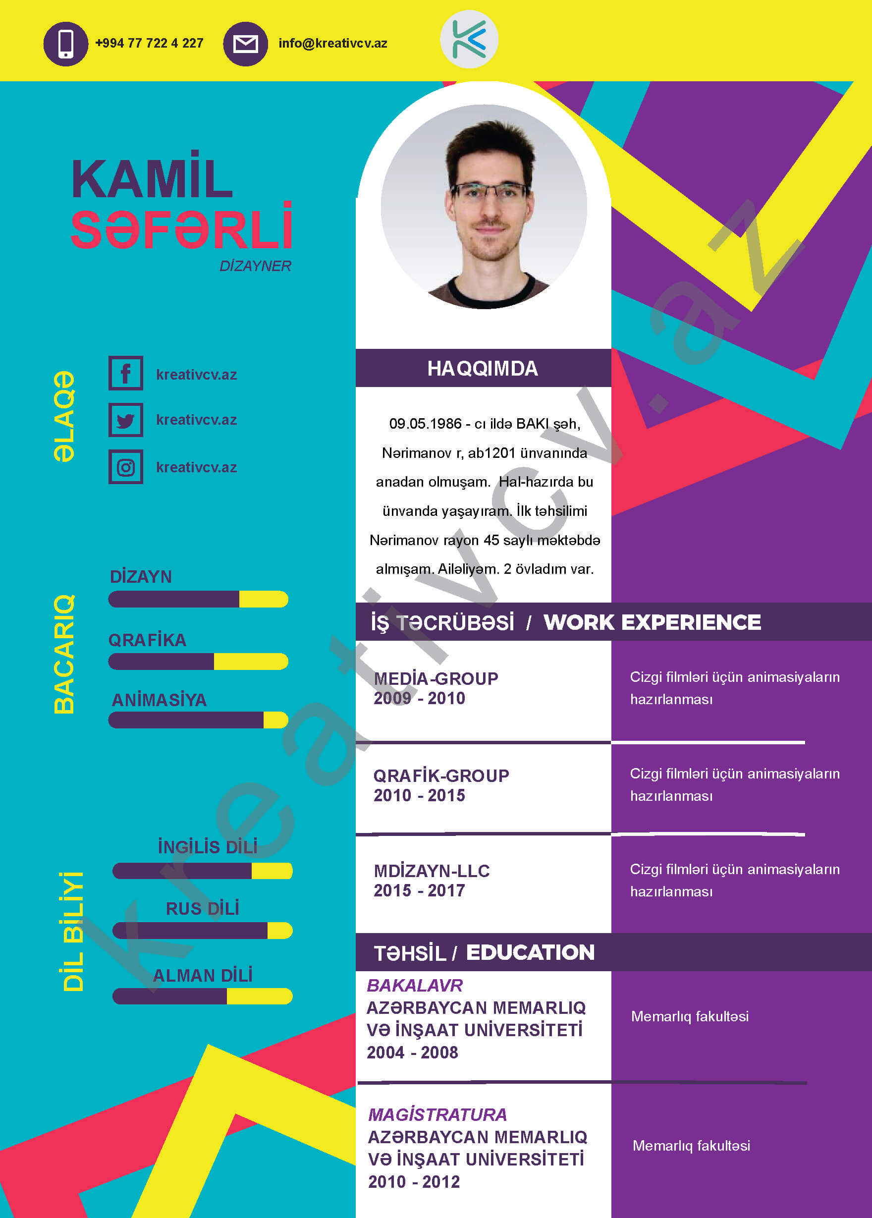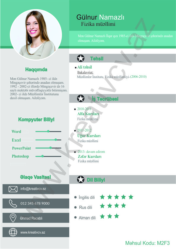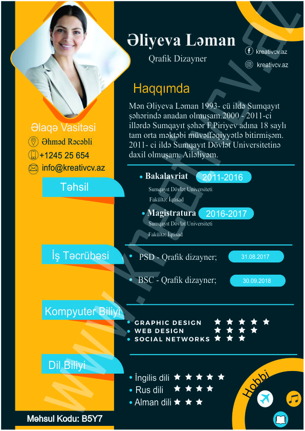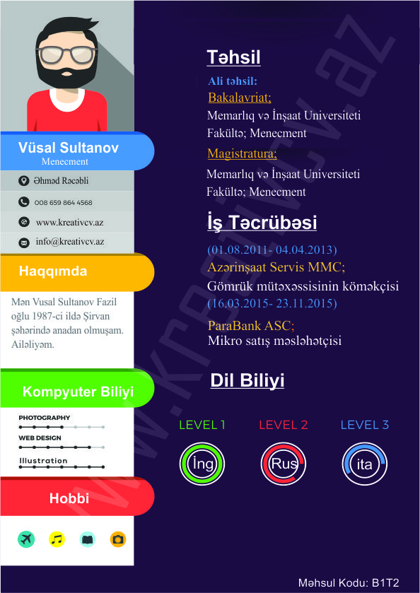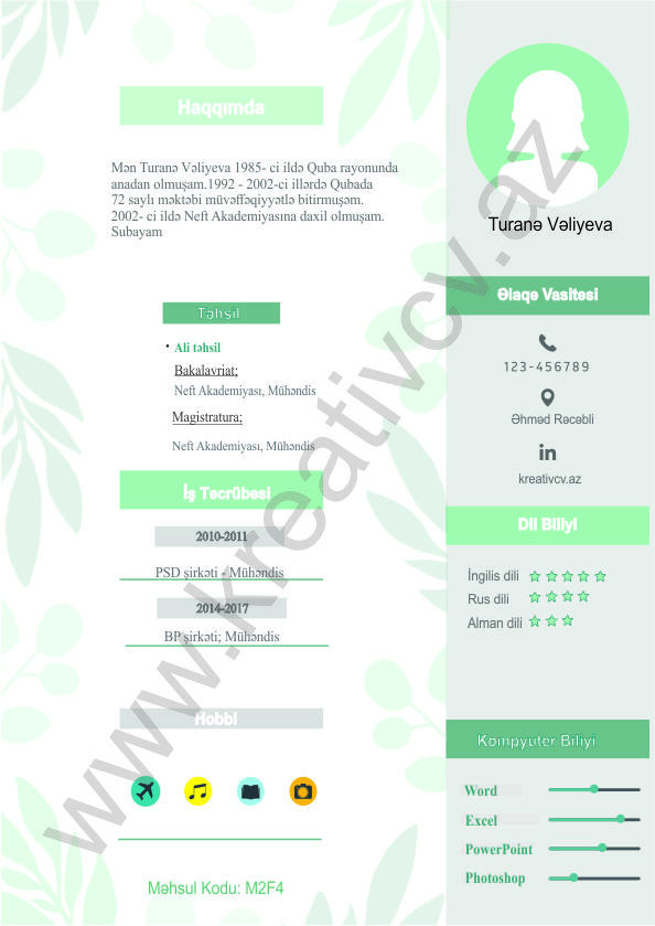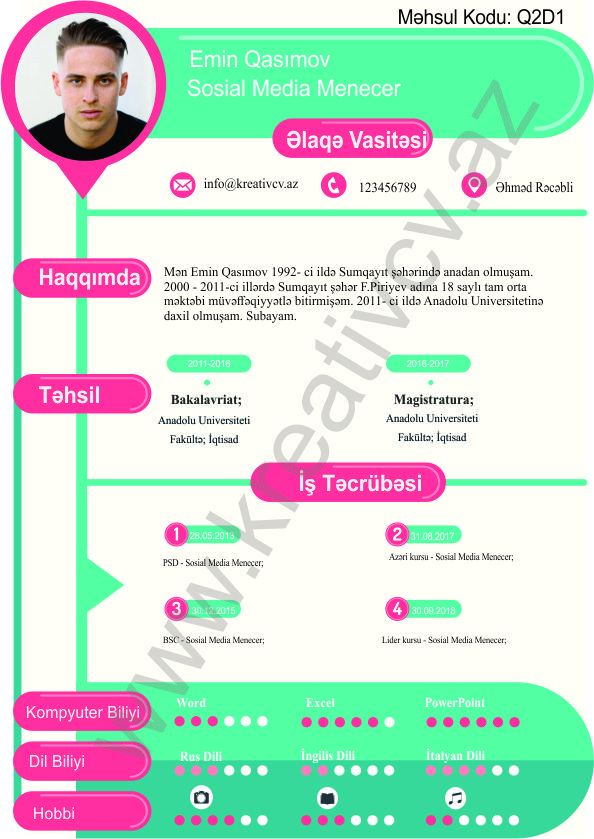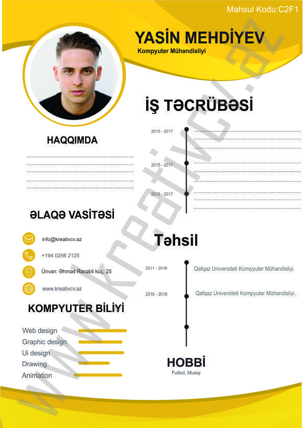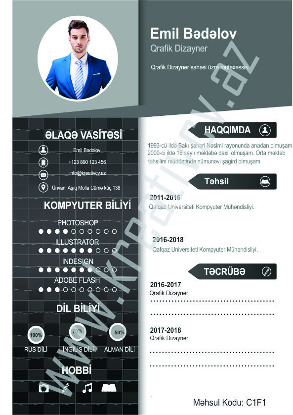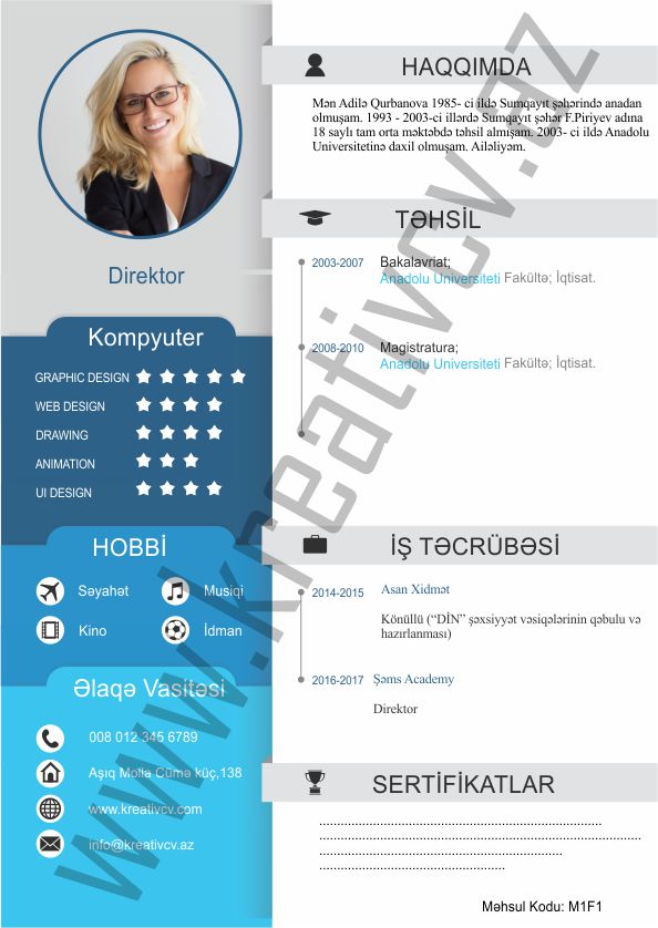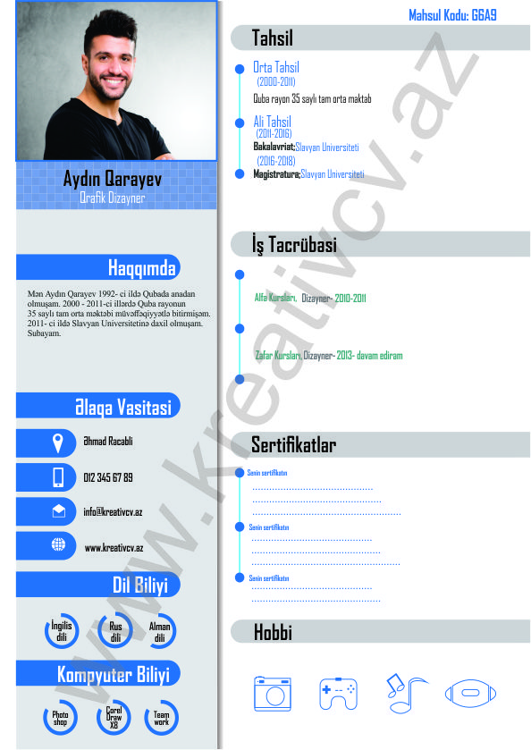 Müraciət etdiyiniz iş yerlərindən cavab əldə edə bilməməyin başlıca səbəblərindən biri, Sadə və Şablon CV-lərlə diqqət çəkə bilməməkdir. Belə olan halda, diqqət çəkməyin mümkün olmadığını nəzərə alaraq kreativcv.az sizə Azərbaycanda ilk dəfə, tam yeni növ CV-ləri təqdim edir. Bizə müraciət etməklə, CV-nizin görüntüsünü daha cazibədar edin.